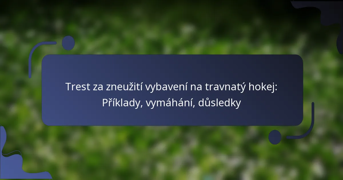 V travnatém hokeji se zneužívání vybavení týká nesprávného zacházení nebo používání výstroje, což může vést k trestům a ohrozit bezpečnost hráčů a integritu hry. Rozhodčí jsou odpovědní za identifikaci porušení a uplatňování trestů na základě stanovených pravidel, čímž zajišťují fair play. Důsledky takového zneužívání se mohou pohybovat od okamžitých trestů po dlouhodobé následky pro hráče i týmy.